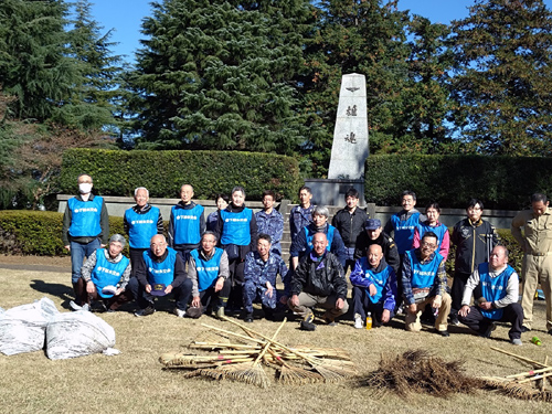 慰霊碑及び慰霊碑前広場の清掃は令和7年11月26日(水)の追悼式に先立ち、22日(土)午前9時から約2時間、下総水交会(会長野村勉)と合同で、総勢約20名で実施しました。