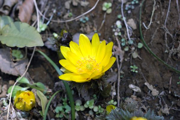 厳しい寒さの中、可憐な黄色い花を咲かせ、