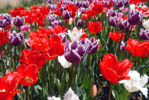花形は変化に富む。 花色も 赤、ピンク、白、黄、紫と多彩である。 オランダで品種改良が進み その多くが,日本に伝来している。