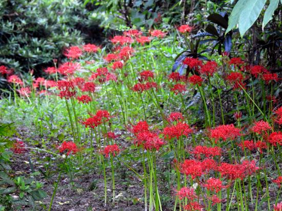 「彼岸花」:花言葉は、「情熱」「独立」「あきらめ」「悲しい思い出」毎年、彼岸の日に咲き、時節を知らせてくれる |